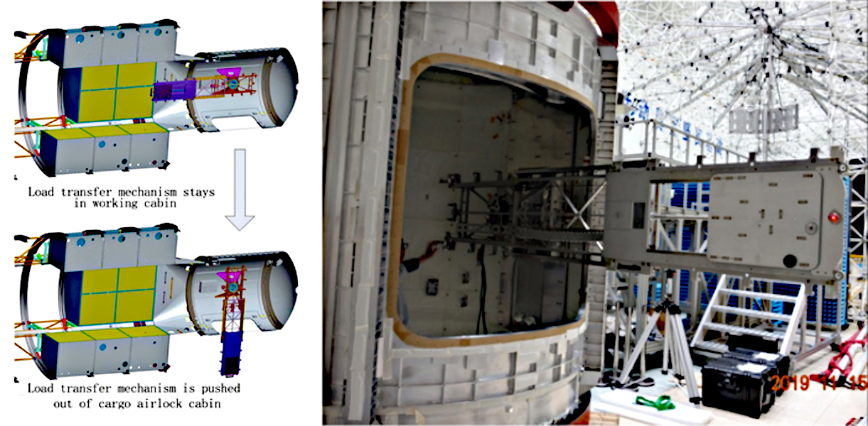 The Airlock cabin allows crew to automatically load and retrieve experiments from the Load cabin. It does not provide facilities for crew EVAs. These are conducted from Wentian's Airlock cabin.