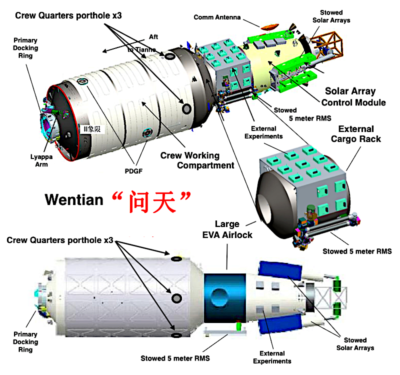 Reference: Wikipedia - Tiangong Space Station | Tianhe | Wentian | Mengtian | Xuntian