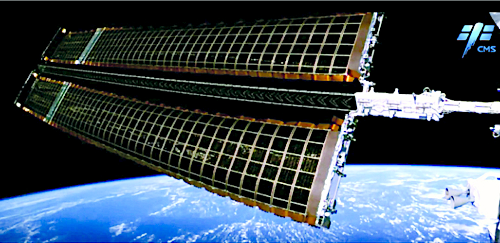 These arrays were launched with Mengtian folded against the sides of the Resource cabin. After Mengtian was moved to its permanent position, the arrays were swung out on support beams and deployed.
